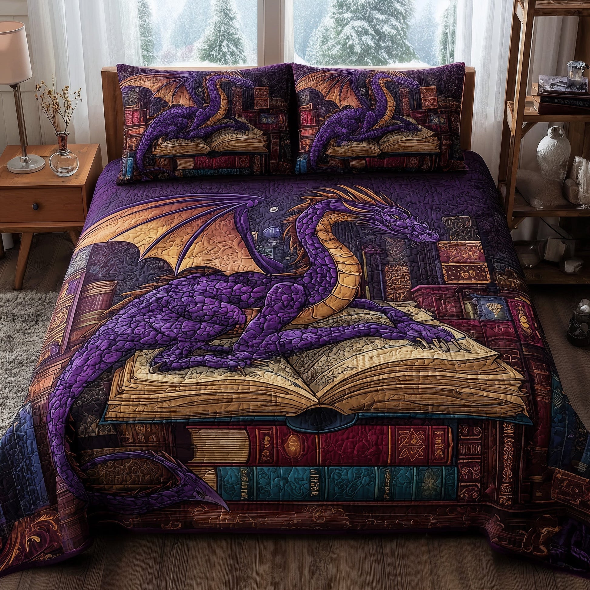 Vintage Purple Dragon 3-Piece Quilted Bedding Set GFTONL5356