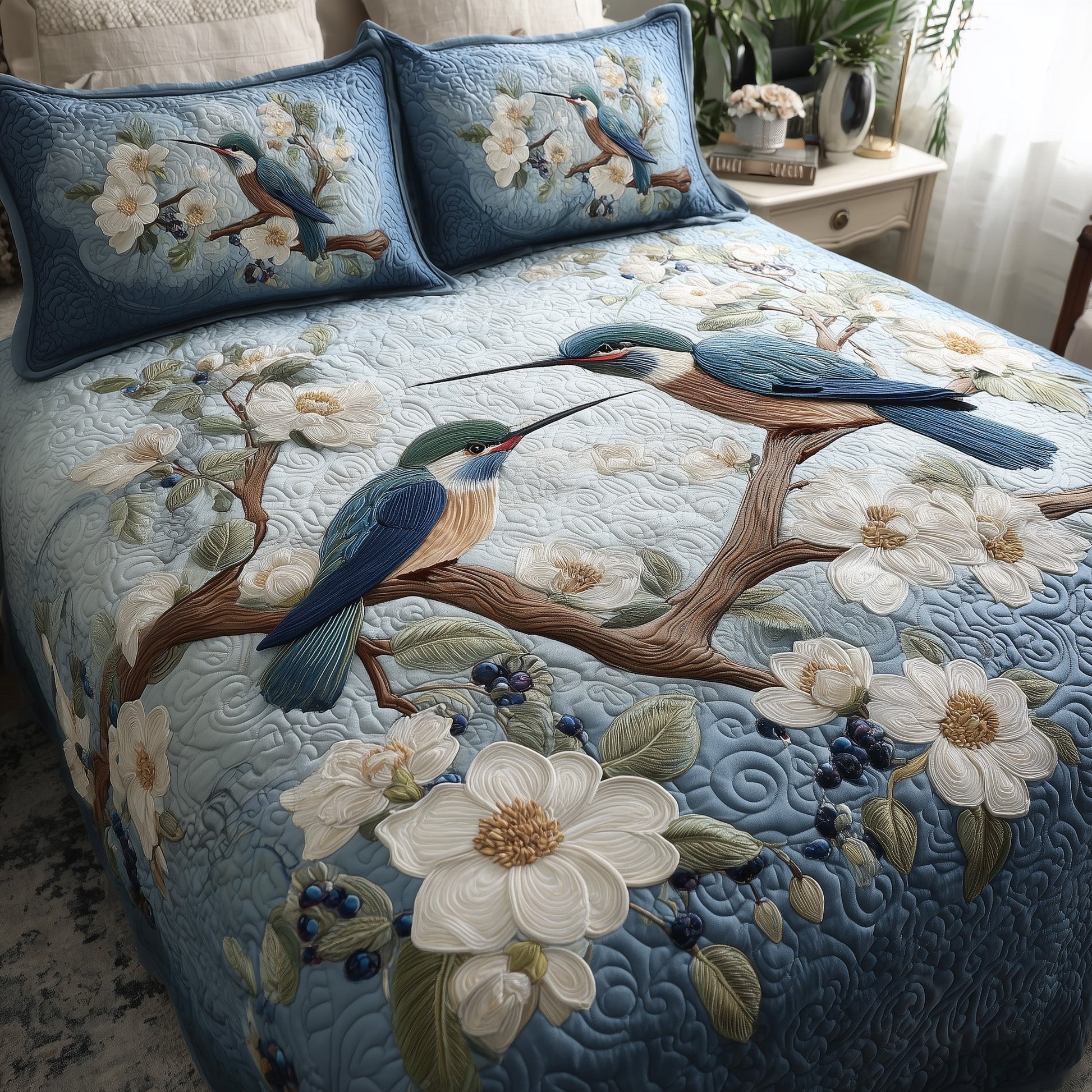 Winter Hummingbird Love 3-Piece Quilted Bedding Set GFTOTL3964